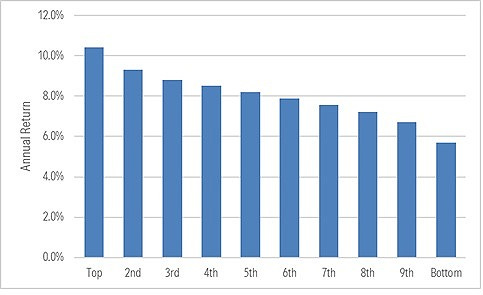 From there, what I wanted to know was how each decile’s short-term performance compared. For instance, did top-decile funds have pedestrian returns in most calendar years punctuated by one or two massive years that vaulted them ahead over the full decade? Conversely, did cellar-dwellers notch standout returns in just as many calendar years as top funds but undo themselves with a few horrid years? Etc.